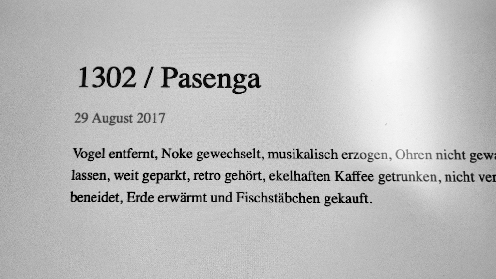 Erzählungen vom Tag im migränenden Delirium mit schlechtem Schlaf, heraufgetauchtem Paket und defekten Politessen, oder so ähnlich.